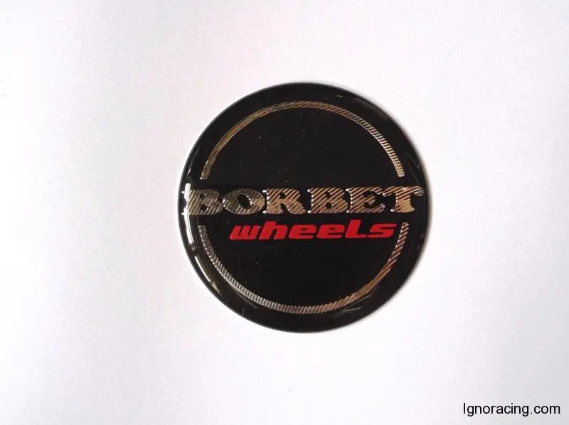 ORIGINÁL BORBET. Průměr přes pac. 52mm, déka zeslabení pac. 4,5mm emblém černý litý,stříbrné písmo s obloučky, červené logo wheels,*74404*